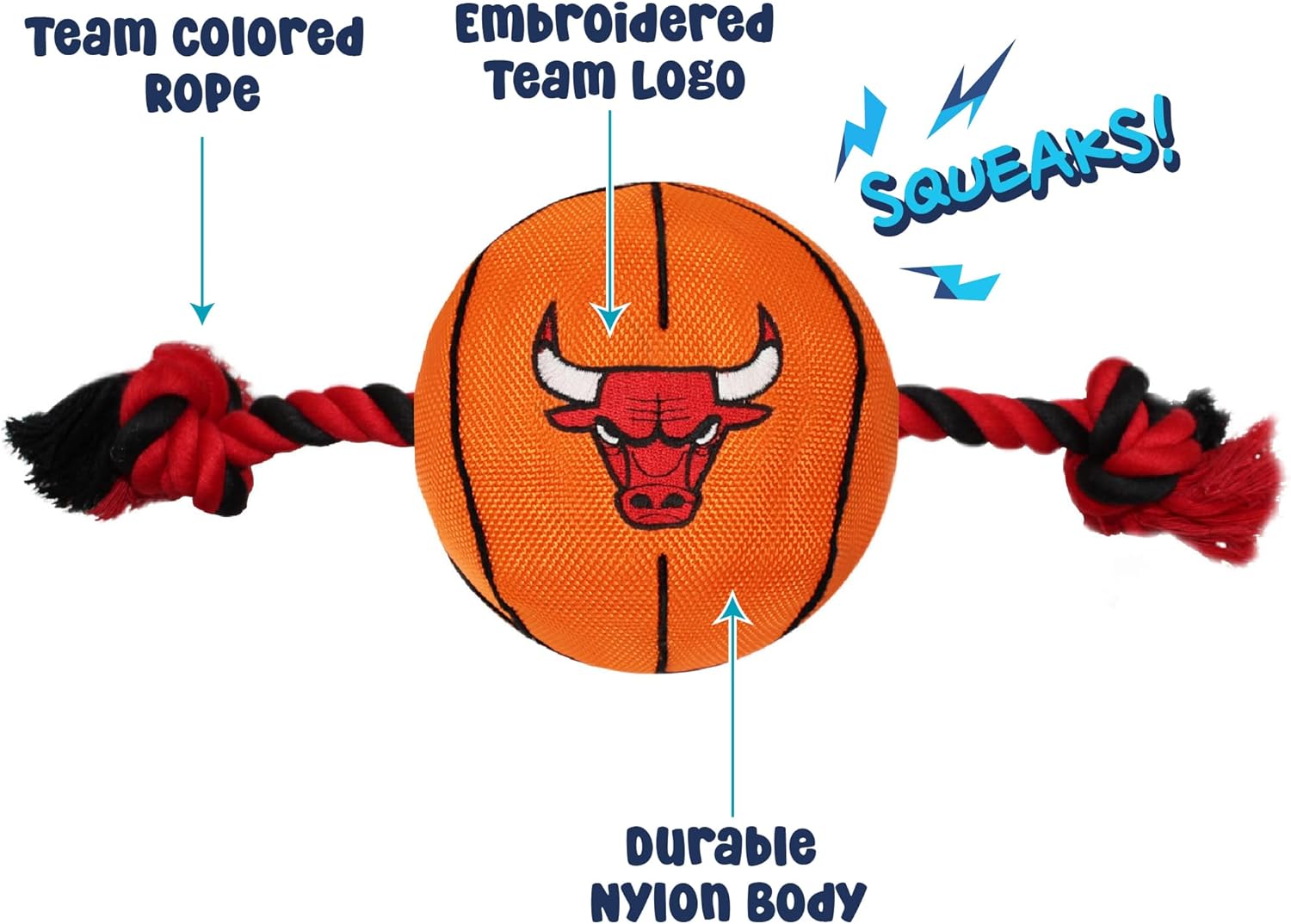 Pets First NBA Chicago Bulls Basketball Toy. – Tough Nylon Pet Toy with Tug Ropes & Inner Squeaker, One Size, BUL-3105