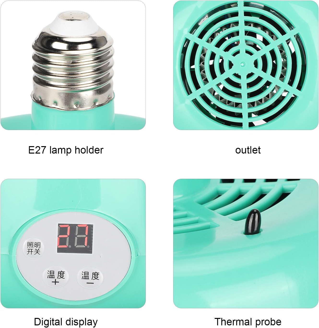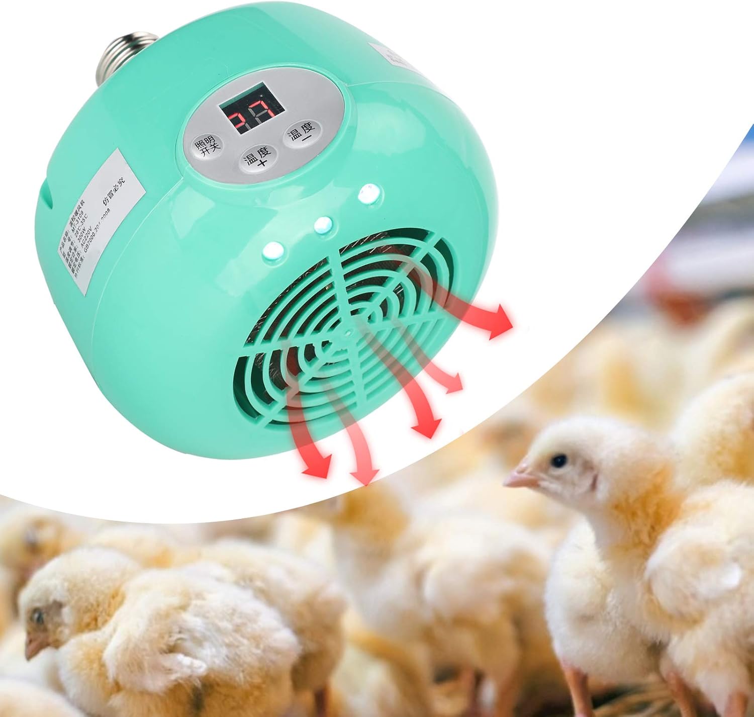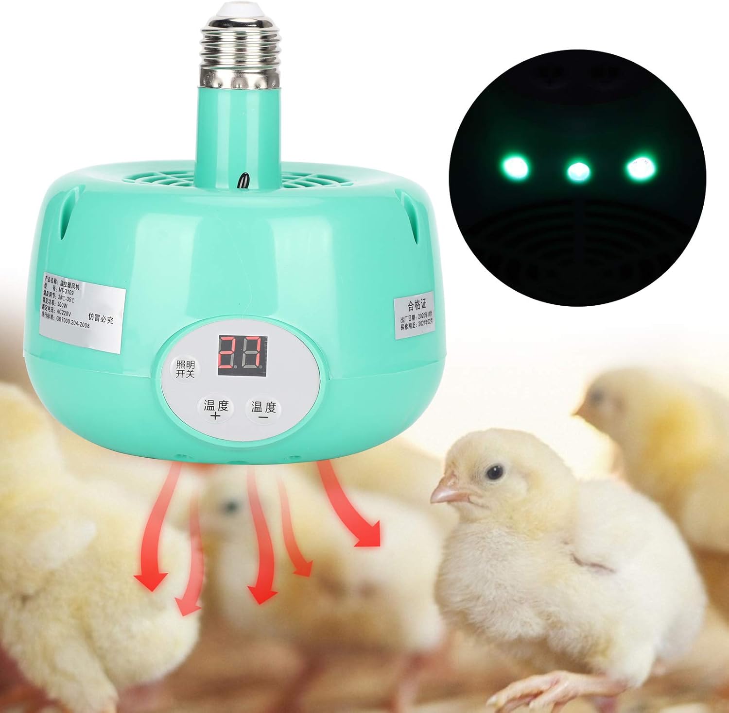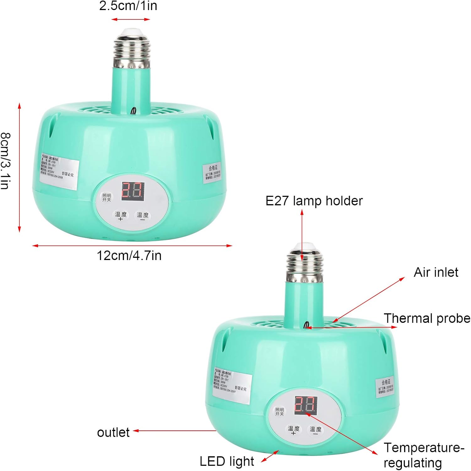 Specification: Item Type: Heater Lamp Material: Plastic Color: As Pictures Shown Weight: Approx. 315g/11.1oz Product Size: Approx. 12x8cm/4.7×3.1in Application: Heating and Temperature Control for Domestic Livestock and Poultry, Pets Power: 300W Voltage: 220V Temperature Regulation: 28-35℃