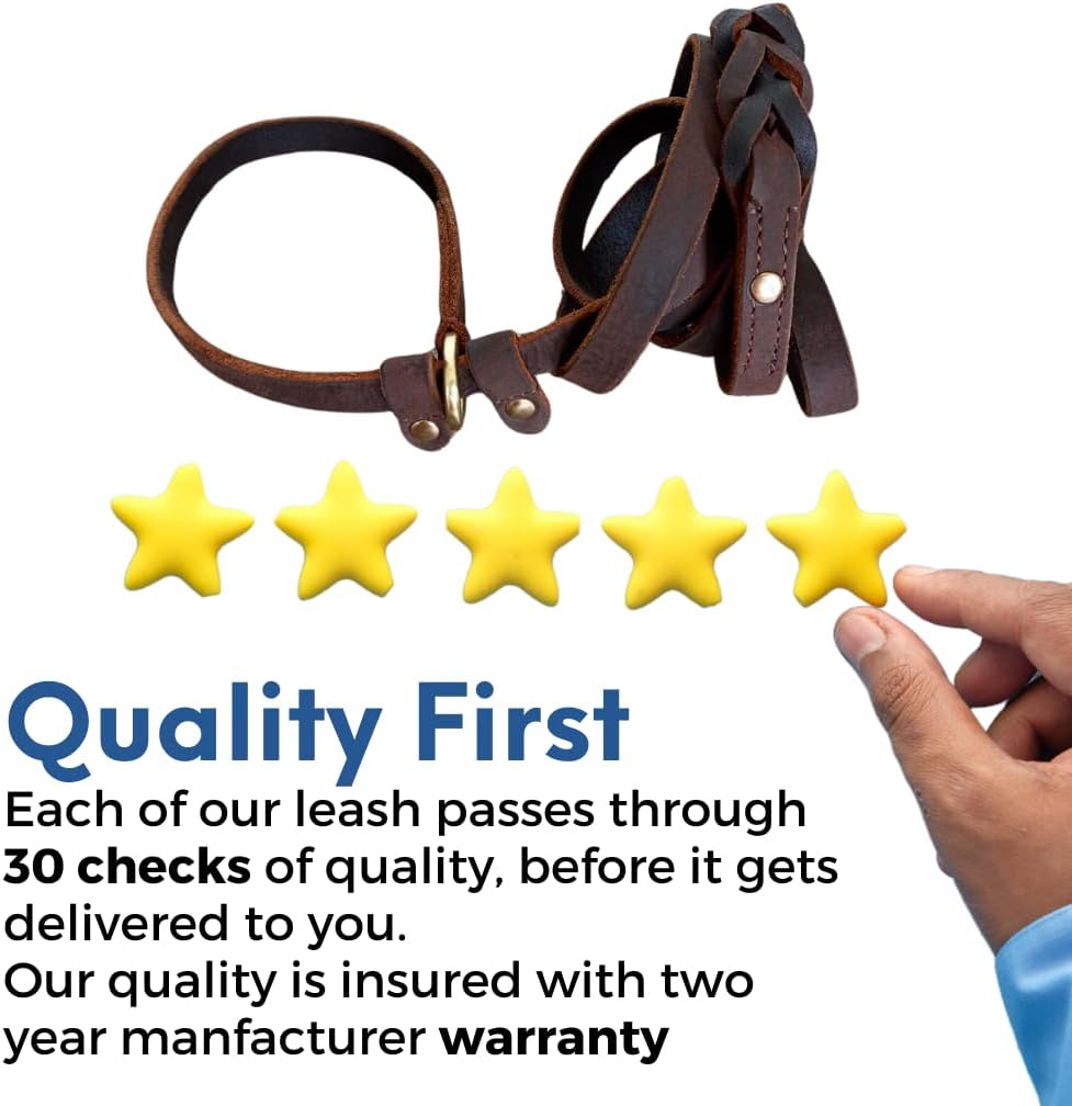 Crafted from high-quality genuine leather, our leash is a testament to superior craftsmanship and durability. Each piece is meticulously designed and skillfully constructed to ensure it withstands the rigors of daily use and the challenges of outdoor adventures. The premium leather offers exceptional strength, a smooth texture, and a timeless aesthetic, making it as reliable as it is stylish