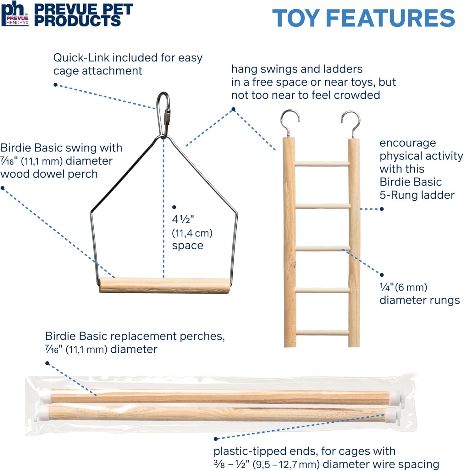 Easily connected to your cage with quick-link attachments and made from 100% non-toxic materials. Some toys are hand made and actual measurements may vary slightly. Prevue Pet creates pet products for owners that have safety and health as their top priority. Prevue Pet ensures nothing but the best in quality material and design for your loved one. Don’t settle for anything less, use Prevue Pet Products. As always, supervise birds at play.