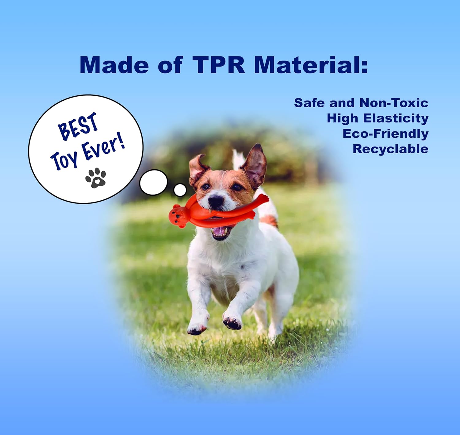 Tough Dog Toys: High quality environmentally friendly TPR rubber, boasts a high elasticity making it a premium dog chew toys for aggressive chewers. Rubber is dirt repellant and easy to clean.