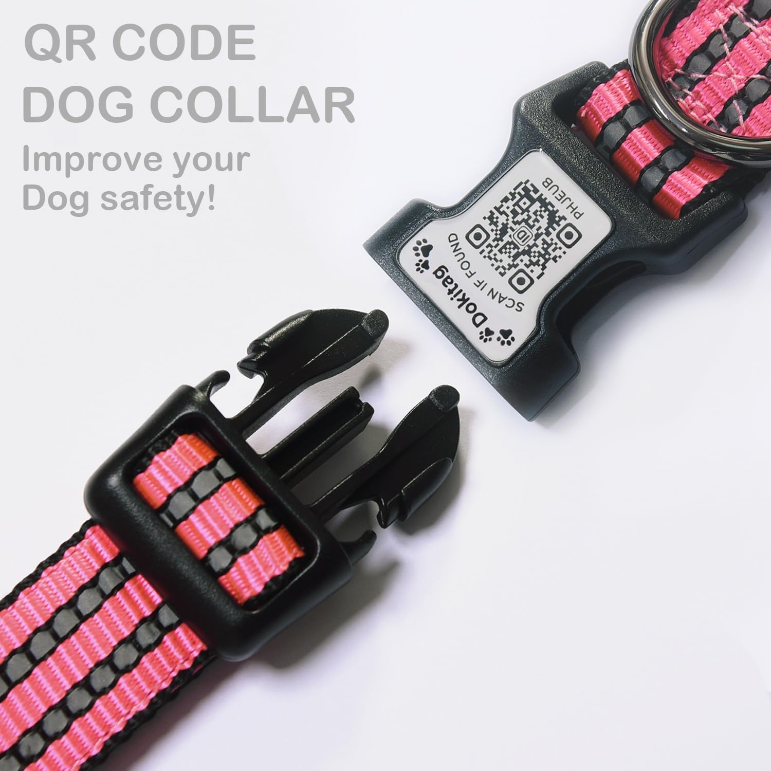 Personalized Dog Collar With Pet ID Tag:Scan the QR code on the collar buckle to activate the tag, create an profile for your pet, you can add multiple emergency contacts, upload multiple pet photos, your home address, etc; One account can manage multiple pets;Anyone who finds your pet can access your pet’s profile and contact you to return it home;No need for APP, No Subscription fee!