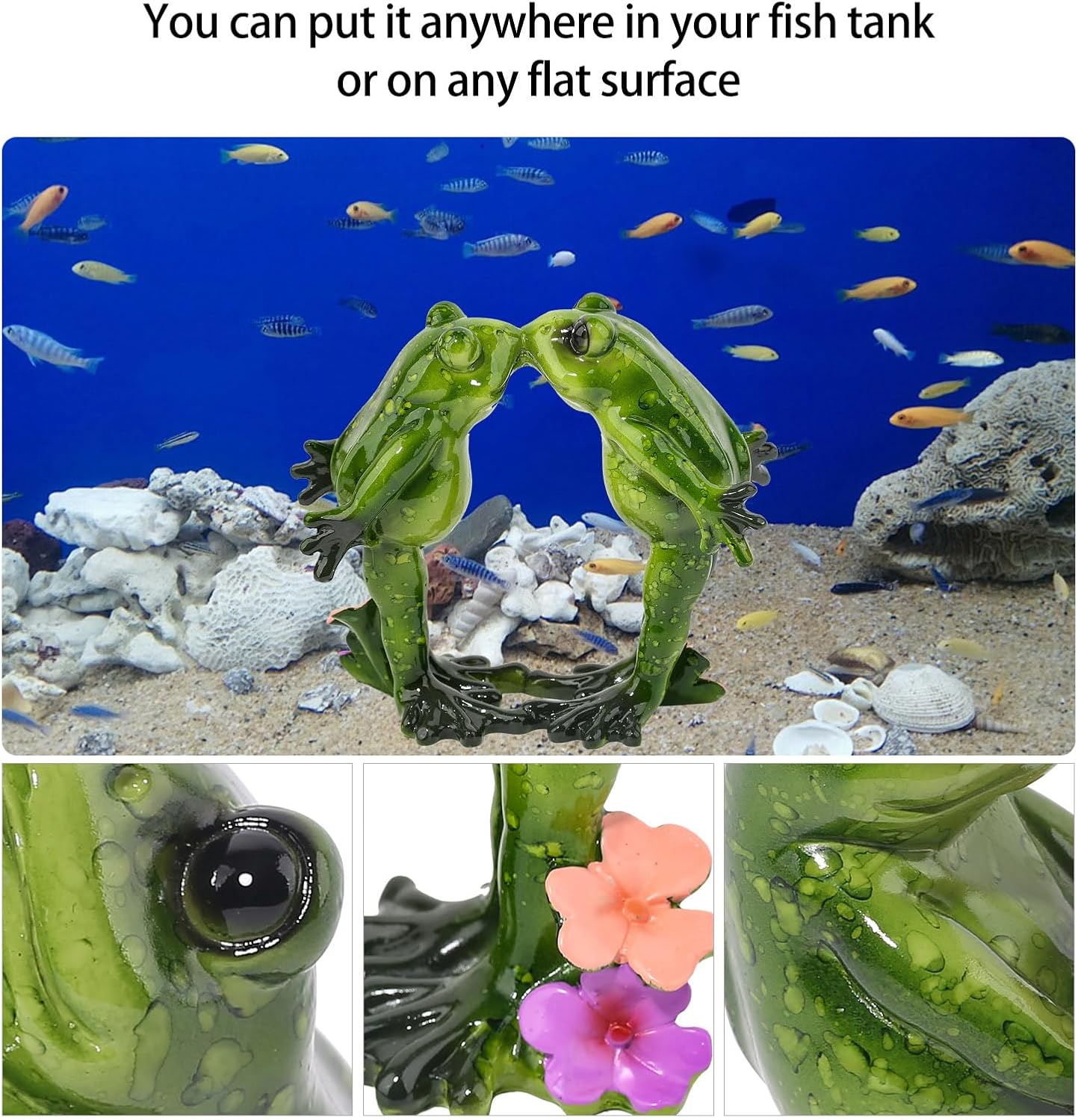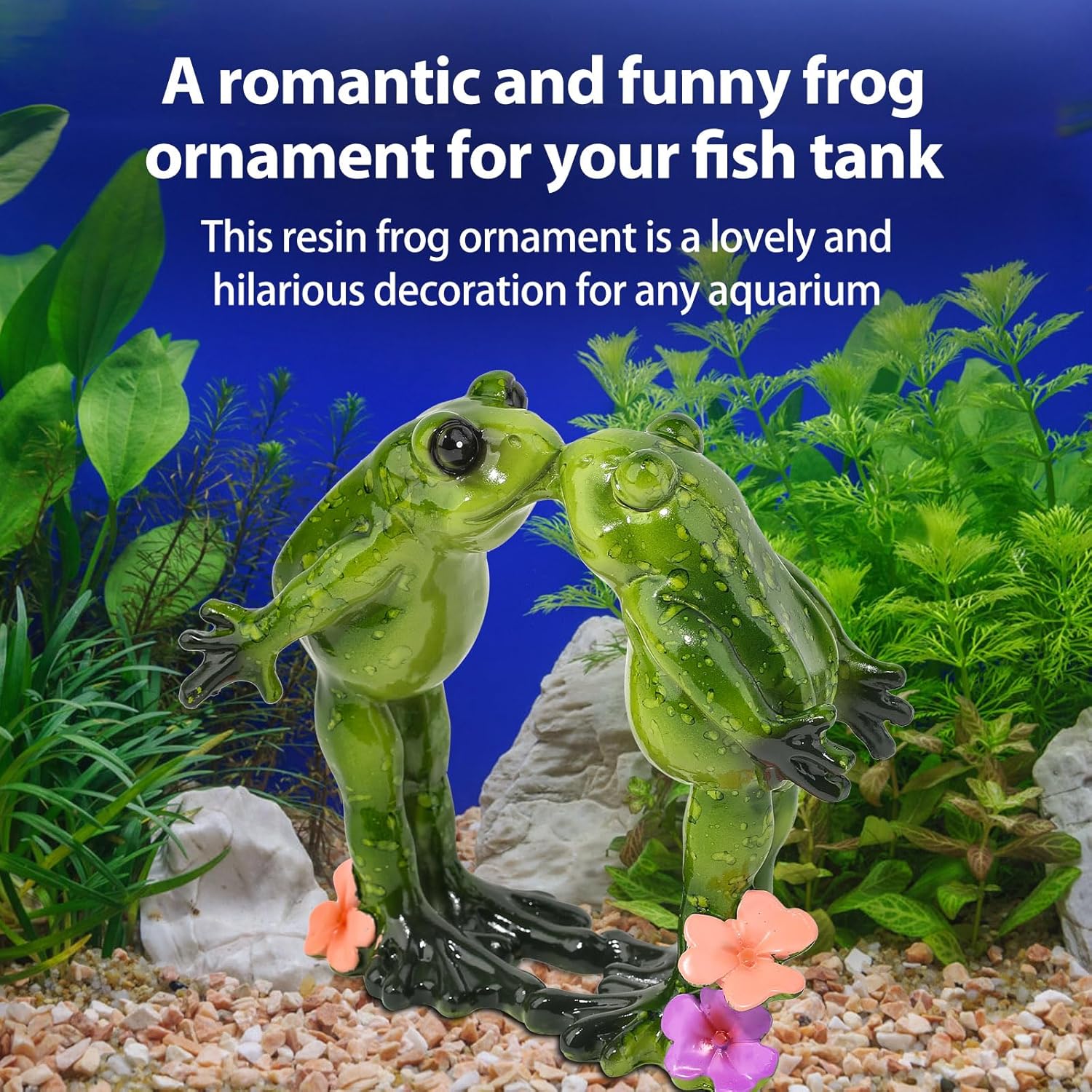 Aesthetically pleasing: The green frog product is made of durable resin material and features two standing frogs hunched over and kissing, adding a touch of whimsy and charm to any fish tank .