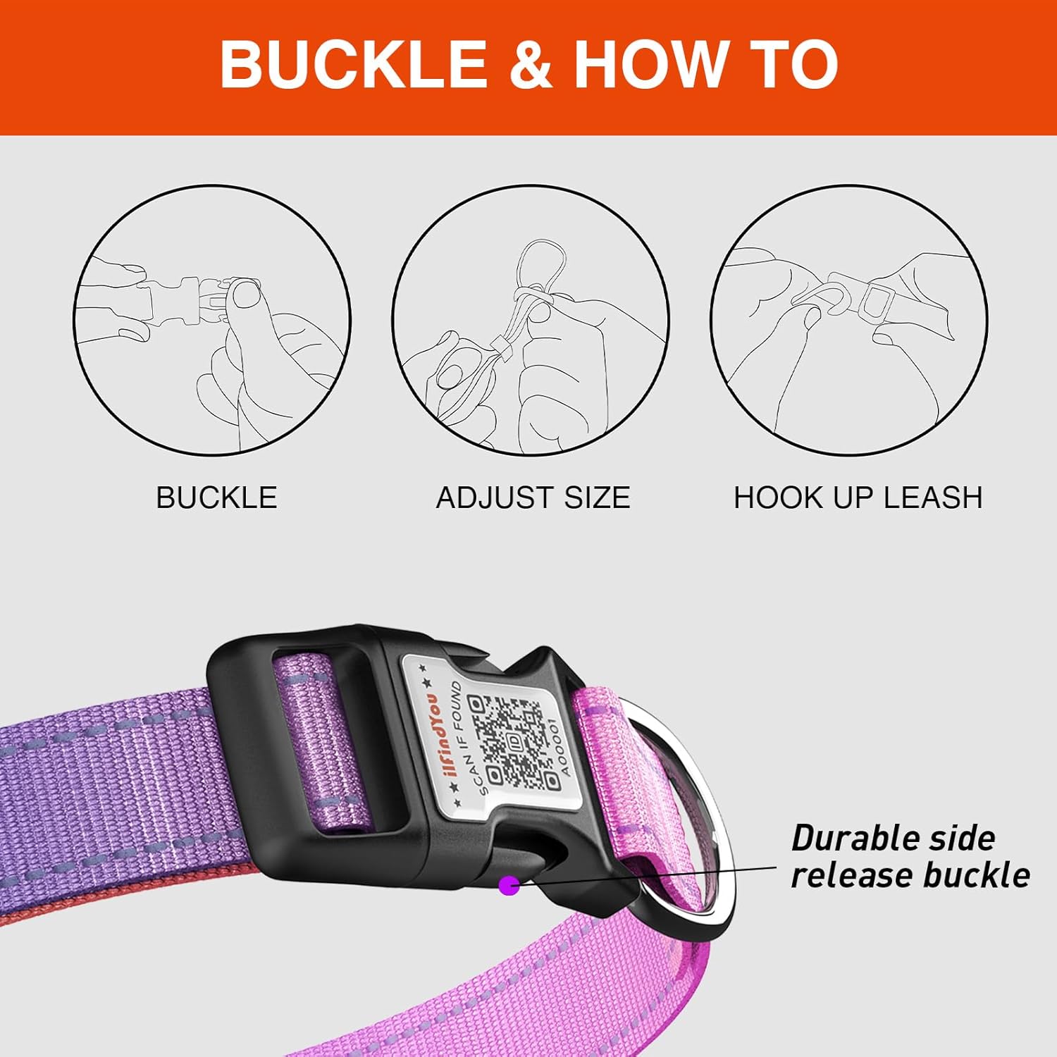 Scan The QR Code to Obtain a Personalized Dog Collar with Name and Phone Number to Prevent Loss. The Nylon Adjustable Durable Nylon Reflective Dog Collar is Suitable for Dogs. L