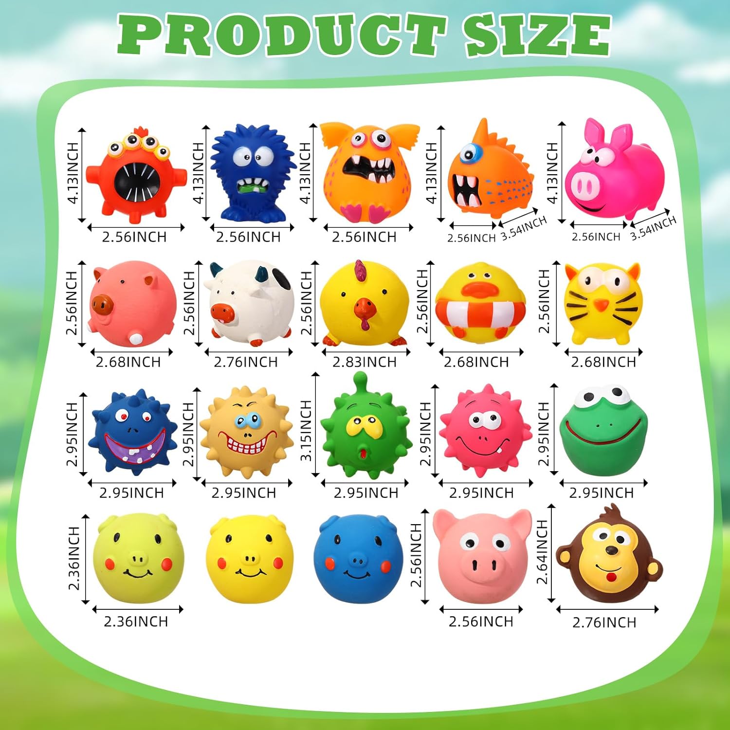 Shappy 20 Pcs Latex Dog Squeaky Toys, Soft Rubber Chew Squeaky Dog Toys Balls for Funny Animal Sets Interactive Fetch Play Chew Molar for Small Medium Dogs Pets