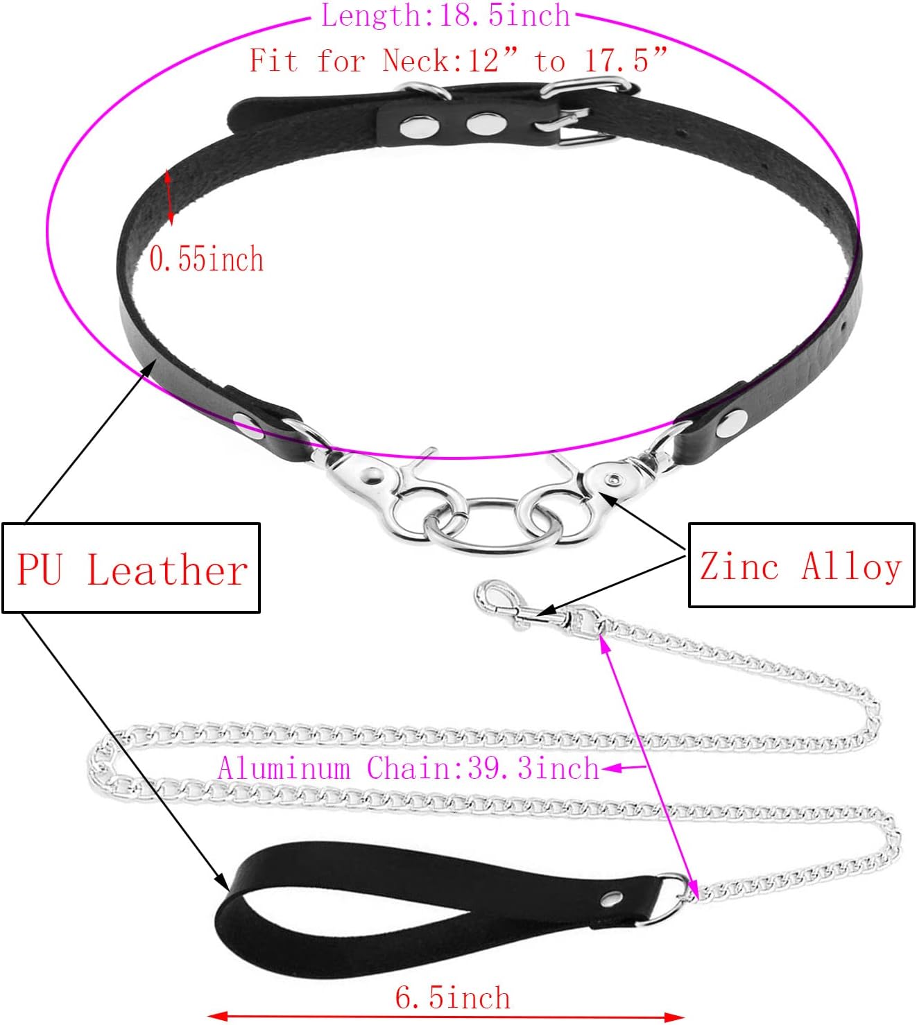 Soft Faux Leather Ring Collar and Chain Leash Set for Pet Punk Emo Cosplay Outfits Accessories, Fit Neck 12″-17″