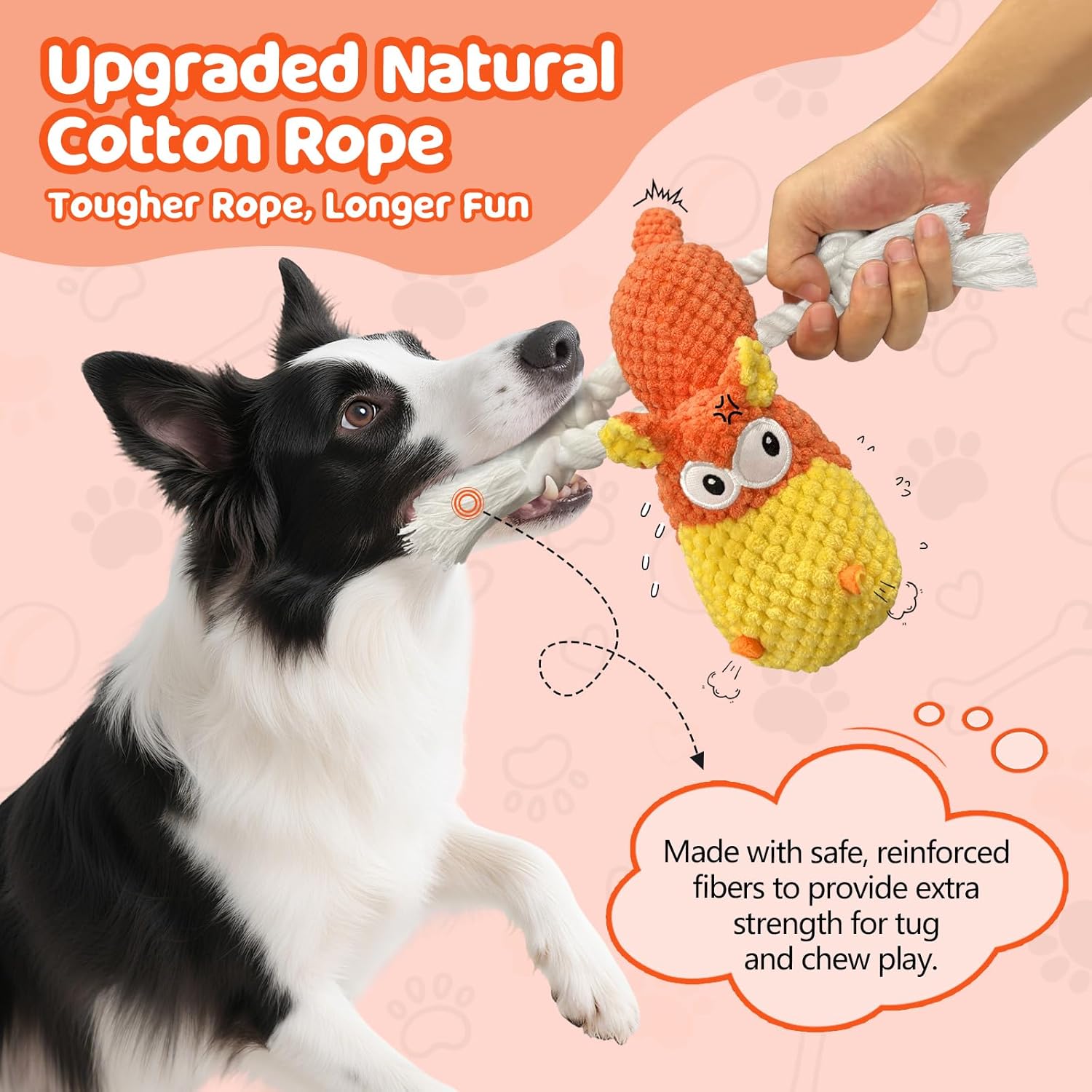 Interactive Tug Plush Toy: Rope legs made with soft cotton—durable enough for dogs to tug on their own or enjoy a fun game of tug-of-war with you. Every playful tug brings more than just fun—it helps your dog stay active, relieves boredom, and builds a bond between you and your dog
