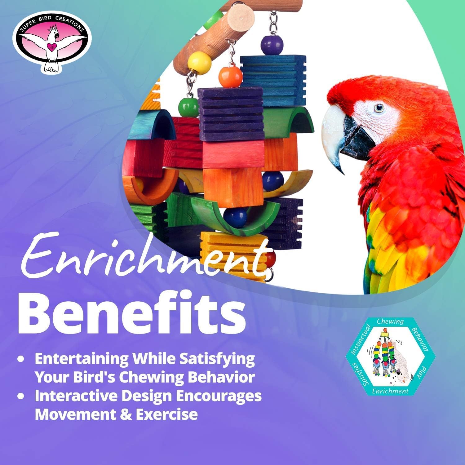 RELIEVES BOREDOM: Combat boredom, depression, and aggressive behavior in your pet bird with Super Bird Creations’ “Playthings with a Purpose.” This enrichment toy encourages exploration and interactive play, suitable for extra large sized birds.