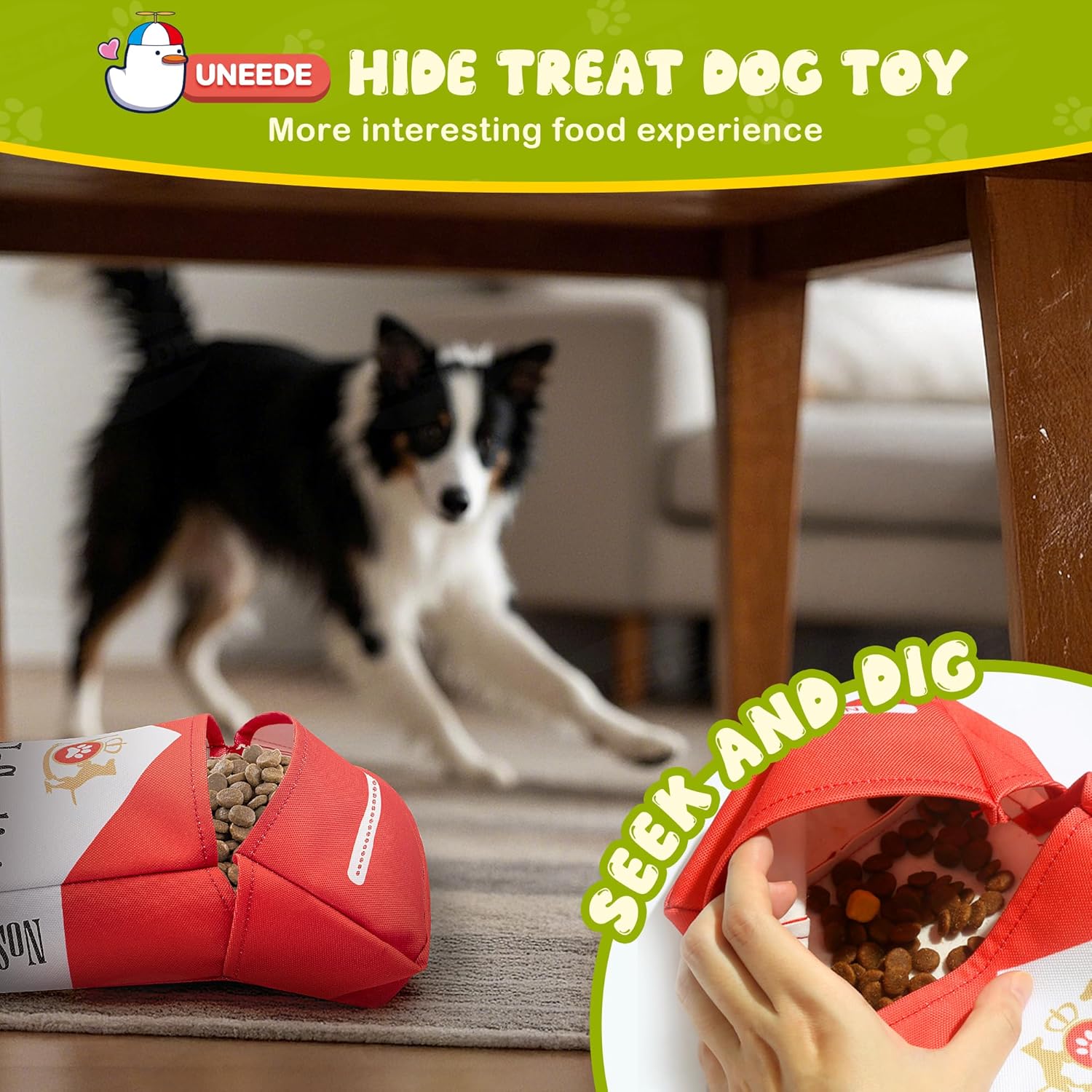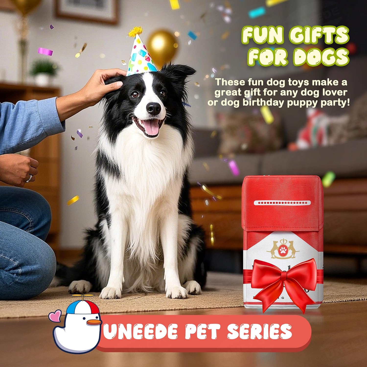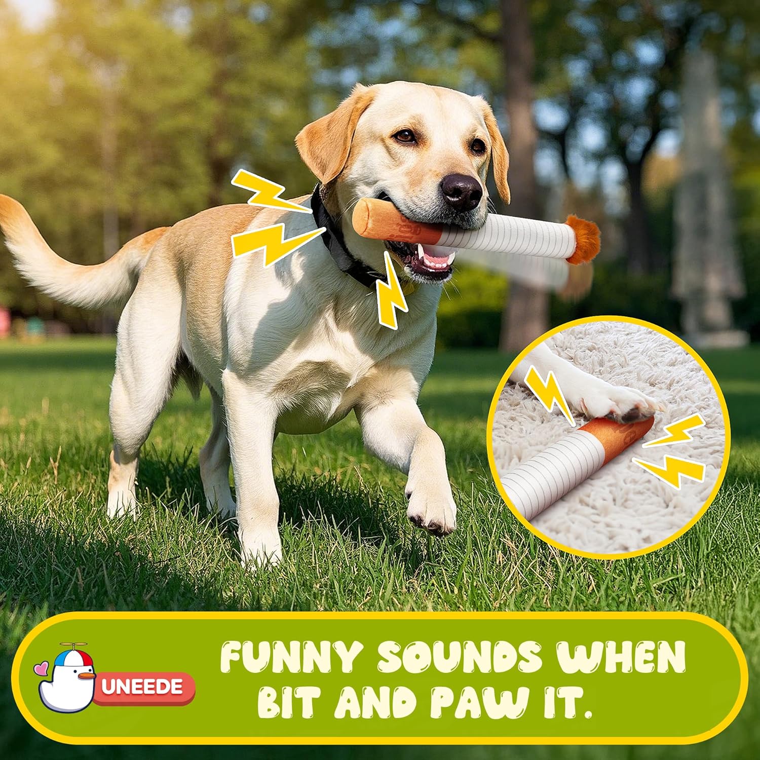 UNEEDE Interactive Plush Giggle Toys with Treat Box, 3 Pack Durable Squeaky Sticks for Small Medium Large Dogs, Fun Dog Birthday Toy, French Bulldog Dog Accessories Boy Gift, Pet Toys