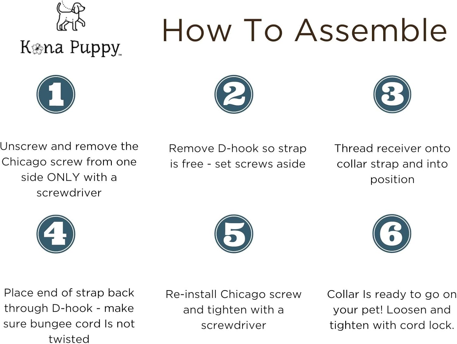 TOUGH, YET COMFORTABLE: We use genuine, “adjustable” Biothane. Equally strong and durable, our strap material is brighter in color, as well as softer and more comfortable than the “beta” Biothane found in most collars. Kona Puppy collars and leashes are completely waterproof, stink-proof, and easily wipe clean. SECURE FIT. EASY ON/OFF: Simply press the button and slide the cord lock to tighten. Made in U.S.A, our cord lock is secure, but easier and faster to operate than a wheel lock. FITS MOST DOGS: We use more Biothane than most manufacturers, making our collars more comfy for your pup. Ideal for dogs with neck sizes from 14-26″. All Kona Puppy products are guaranteed to fit! If you need a custom length, just drop us a line! We’ll be happy to work with you. PERFECT COMPATIBILITY: Available in both ¾” and 1” widths, Kona Puppy collars are designed to fit e-collar, invisible fence, and bark collars by Dogtra, SportDog, Educator, Garmin, and many more. FAMILY MADE IN USA: All Kona Puppy products are lovingly handmade, and designs are rigorously tested for the active dog by Kona, our Chesapeake Bay Retriever and namesake.