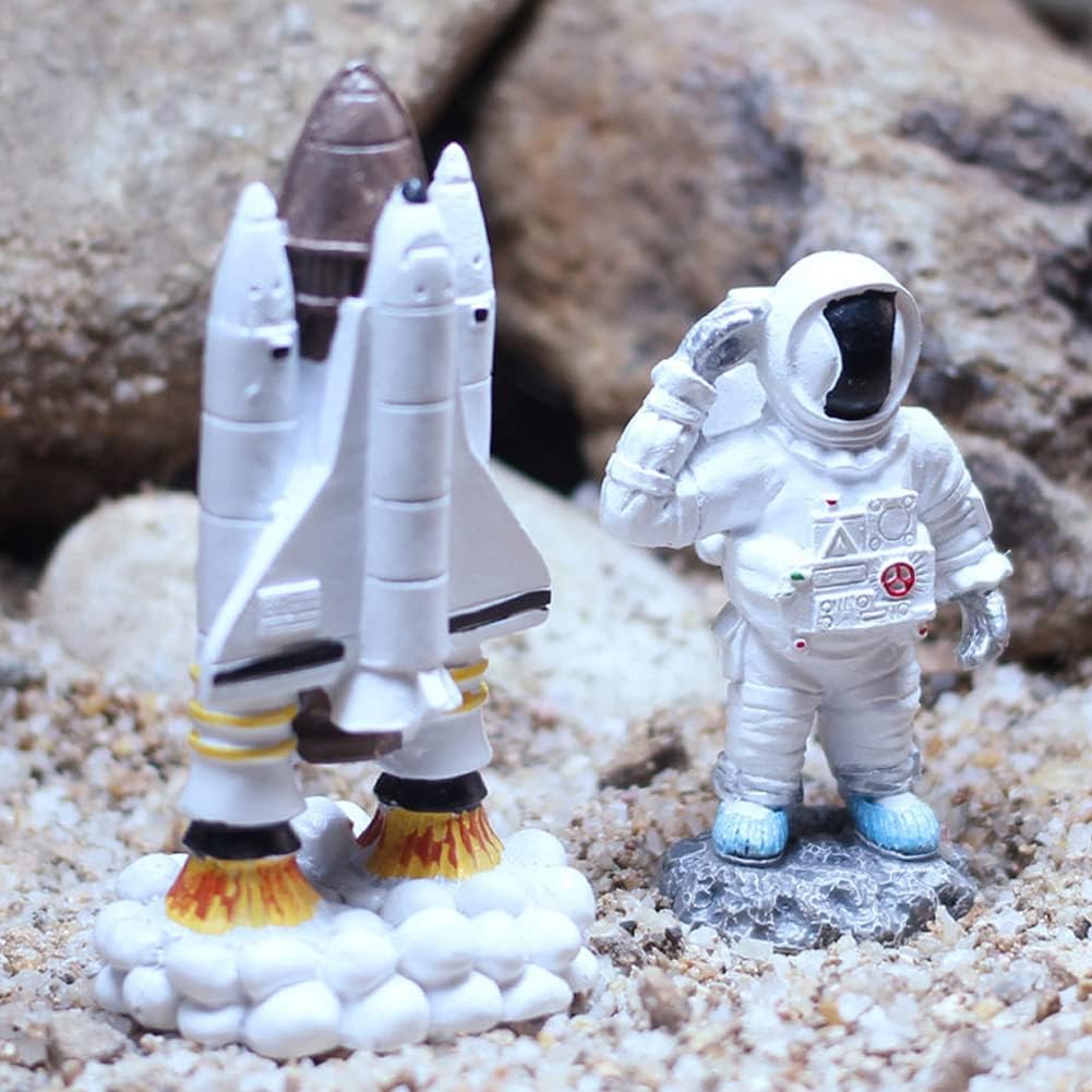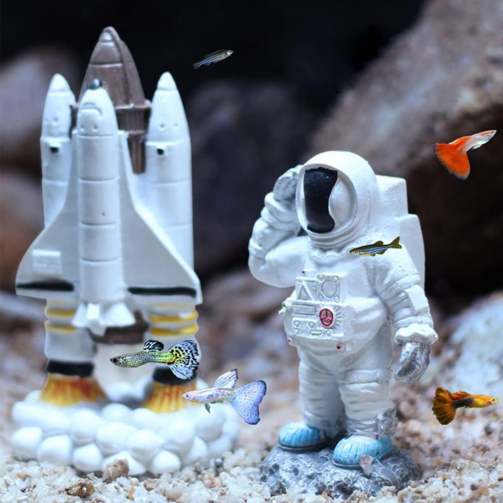 WAYUTO 2Pcs Space Astronaut Spacecraft Aquarium Decoration Astronaut Landscape Desktop Fish Tank Decor Spaceship Rocket Ornaments for Home Decoration