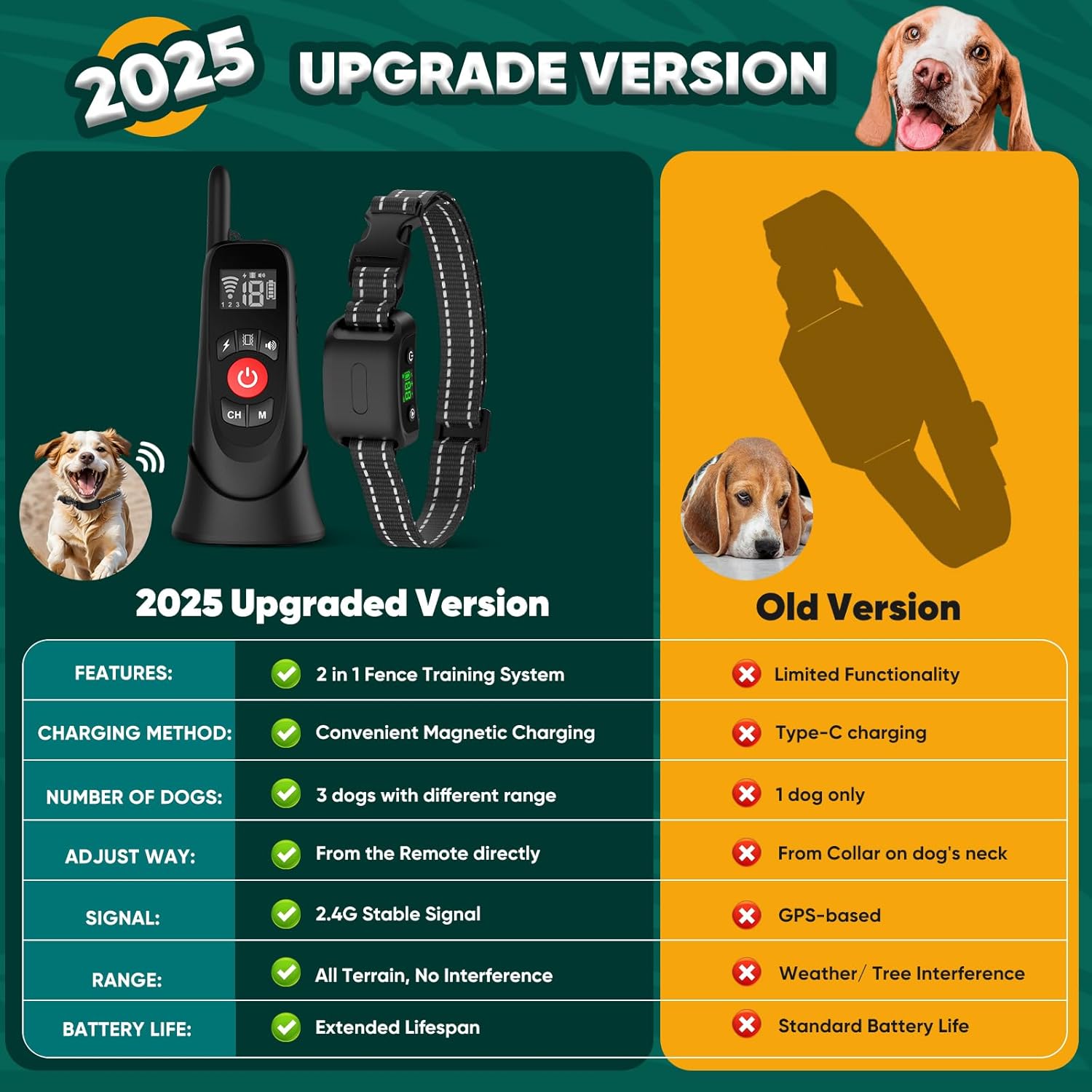 【2025 Innovative Version】The Howfateam 2-in-1 Wireless Dog Collar Fence System seamlessly integrates a wireless dog fence with a remote training collar, providing versatile functionality for efficient pet containment and training. Leveraging the latest 2.4GHz signal technology, the wireless fence system ensures stable and precise signal transmission, capable of penetrating walls without interruption.